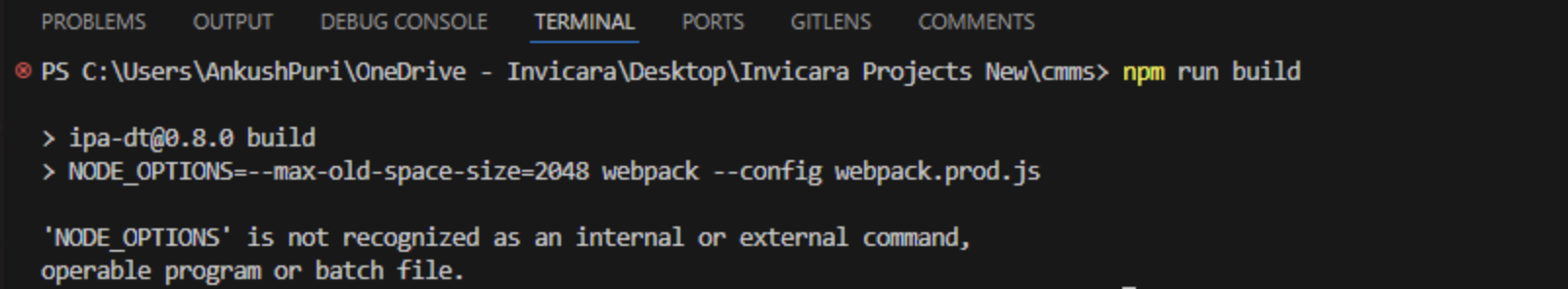NODE_OPTIONS not recognized#